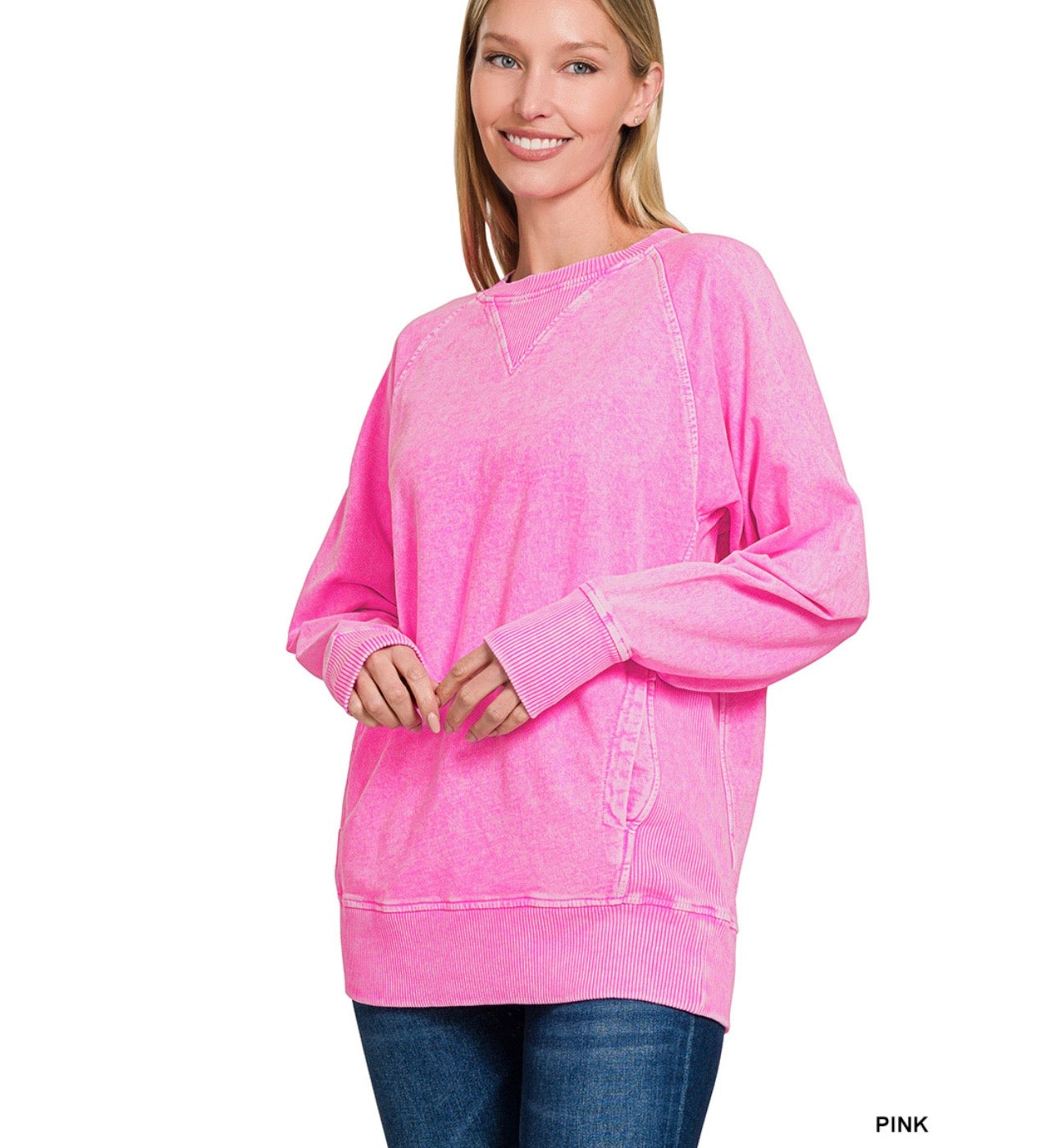 HALO-WASHED FRENCH TERRY ROUND-NECK PULLOVER