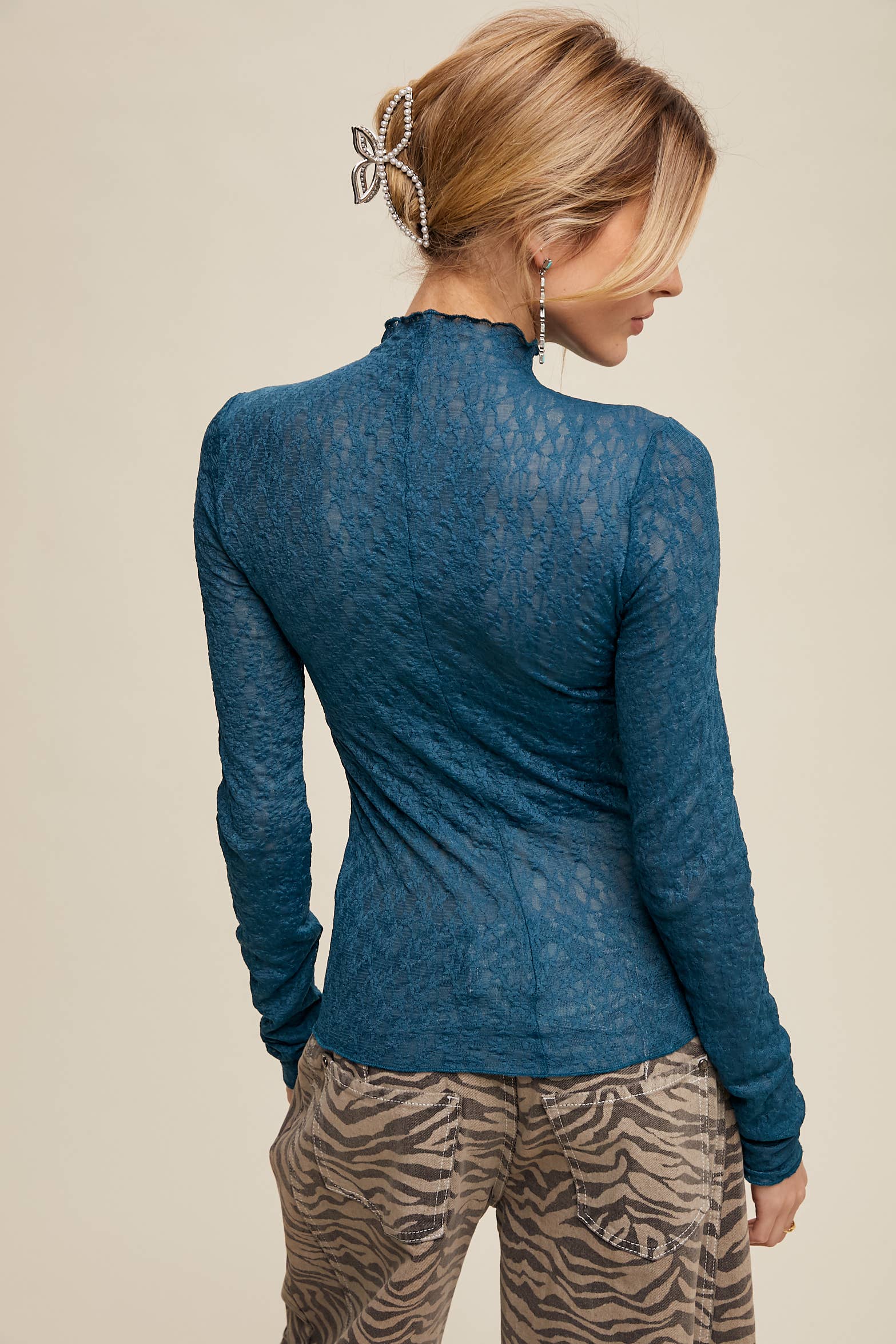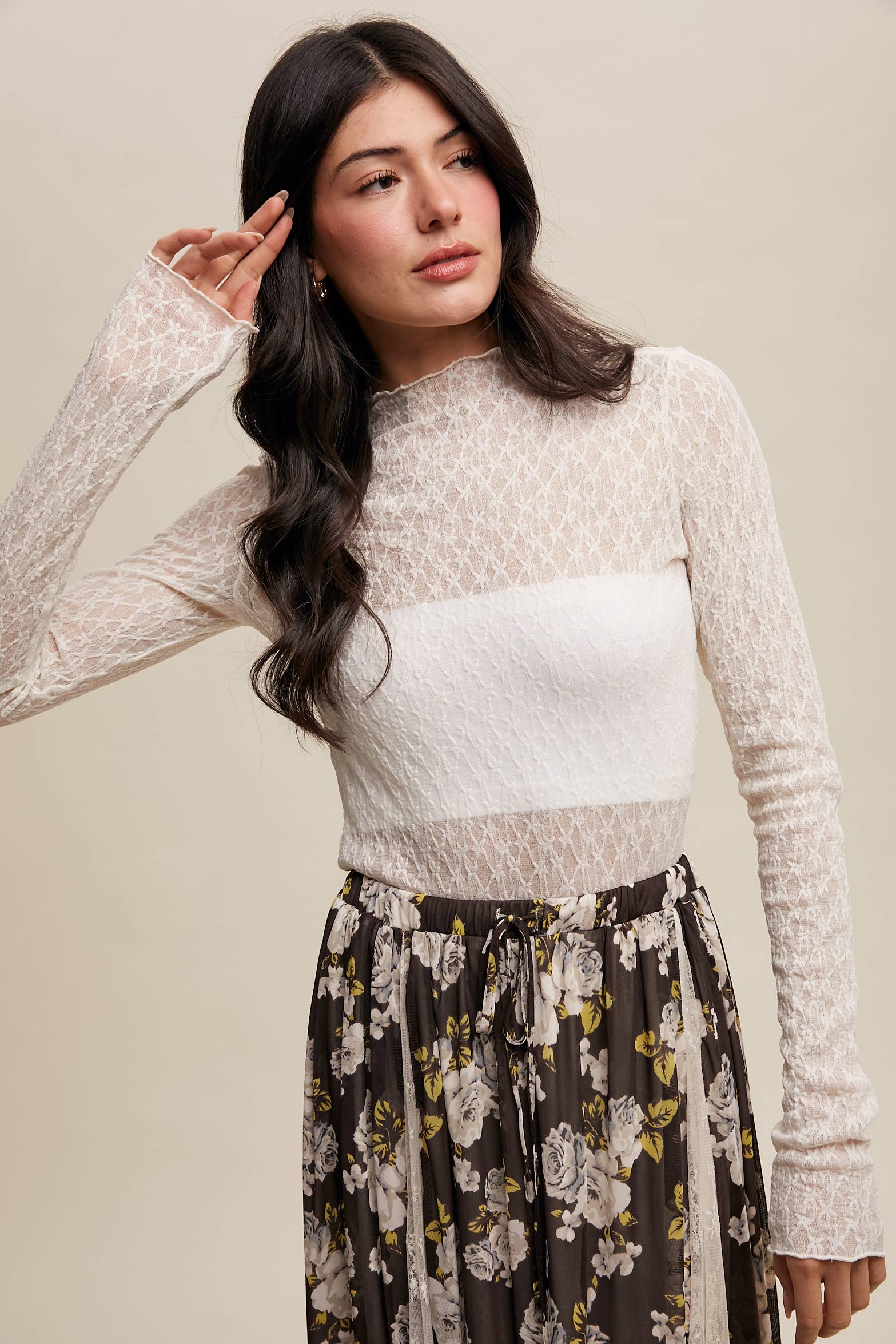 Lace Sheer High-Neck Layering Top