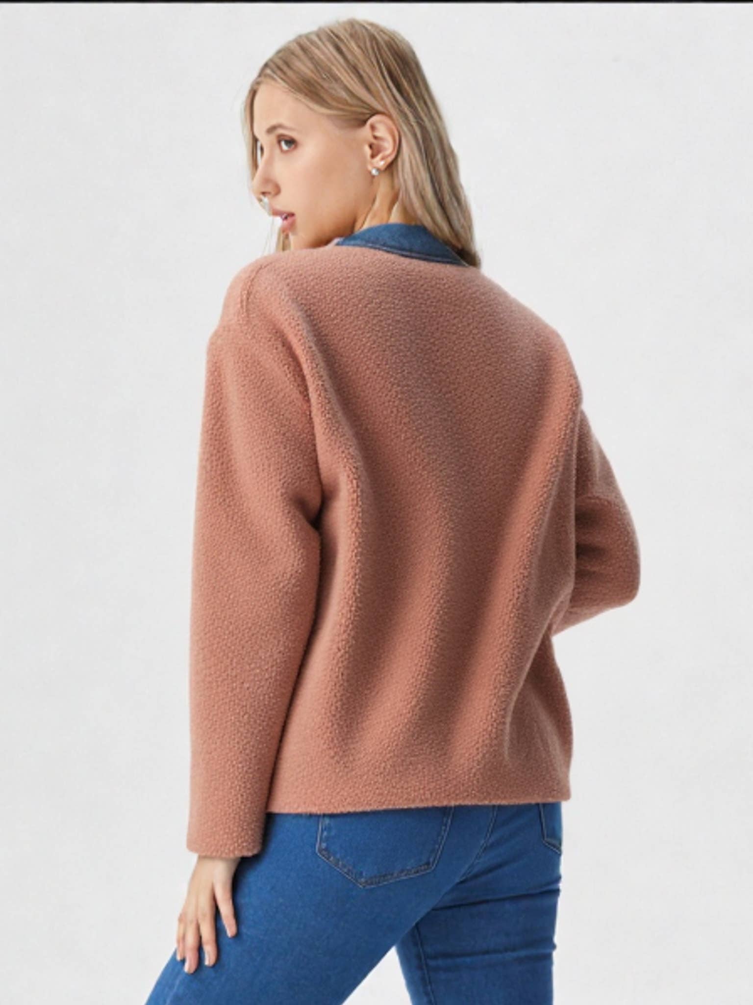 Soft Fleece and Denim Contrast Shacket Jacket Blazer -Comfy drop shoulder -Button Down -Oversized tunic length -with pocket detail - Cozy Outerwear - Cold Weather Essential - Warm Outerwear - Winter Outfit - Winter Jacket - Christmas Outerwear (Model height: 5'9", wearing a Small